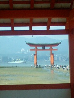 厳島神社の鳥居…(海の上に立ってるように見える)