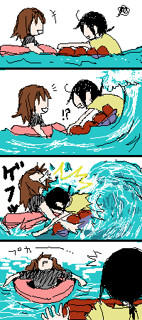 途中もの凄い引きで子供2人が流されて溺れていたので救助しようと近づくとフジツボの大群に足をやられ私も溺れて死にかけたり(意味無い)